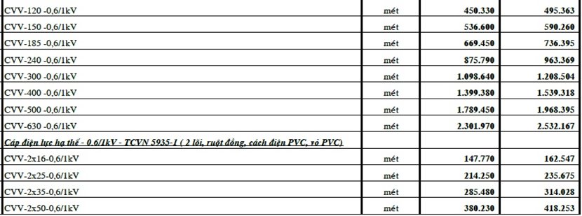 – BẢNG GIÁ CÁP ĐIỆN CADIVI 06/10/2024