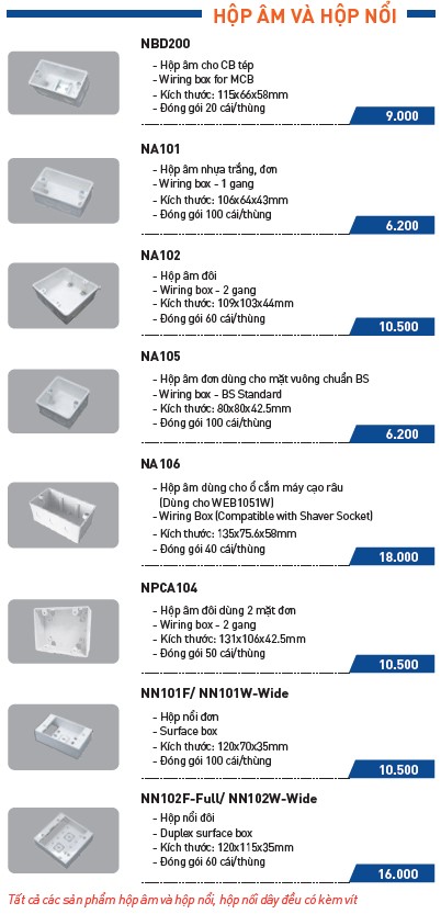 – CÁC LOẠI HỘP ÂM – HỘP NỔI – HỘP NỐI DÂY – MẶT THIẾT BỊ