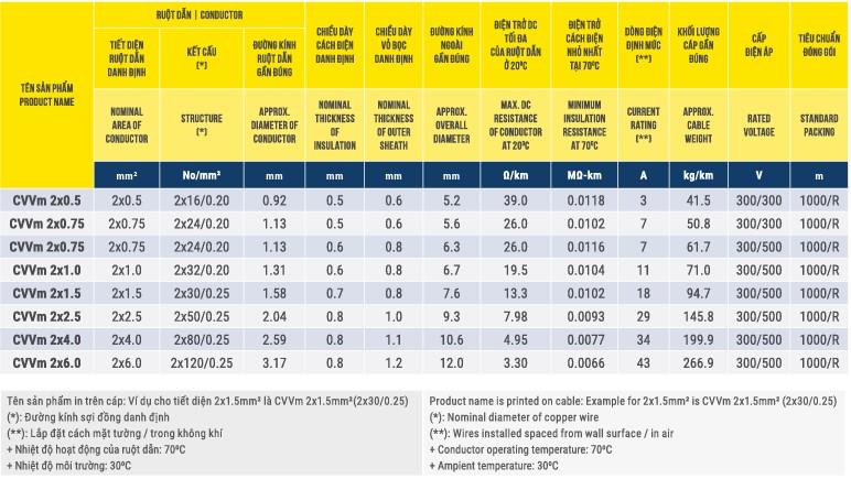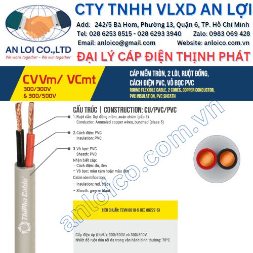 Cáp mềm tròn 2 lõi VCmt Thịnh Phát