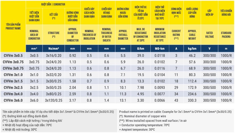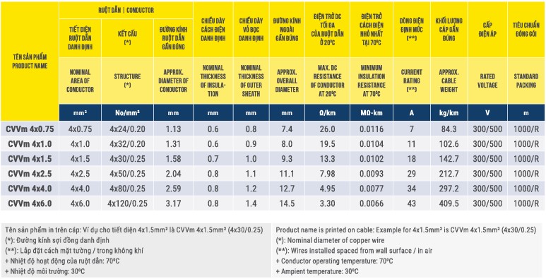 Cáp điện 1, 2, 3, 4 lõi, ruột đồng, cách điện PVC, vỏ bọc PVC Thịnh Phát – CVV