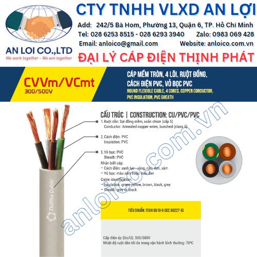Cáp mềm tròn 4 lõi VCmt Thịnh Phát