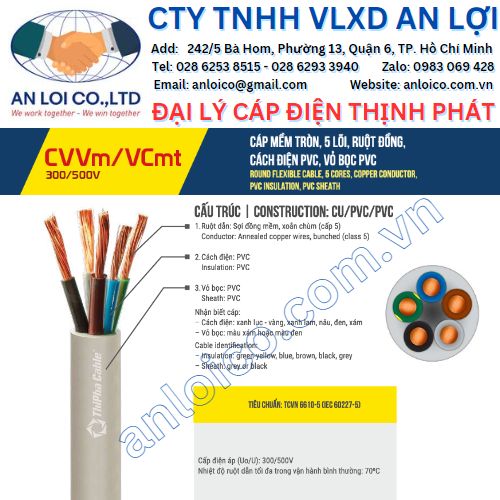 Cáp mềm tròn 5 lõi VCmt Thịnh Phát