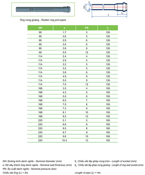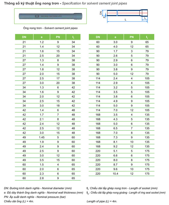 THÔNG SỐ KỸ THUẬT VỀ ỐNG UPVC _ BS TIỀN PHONG